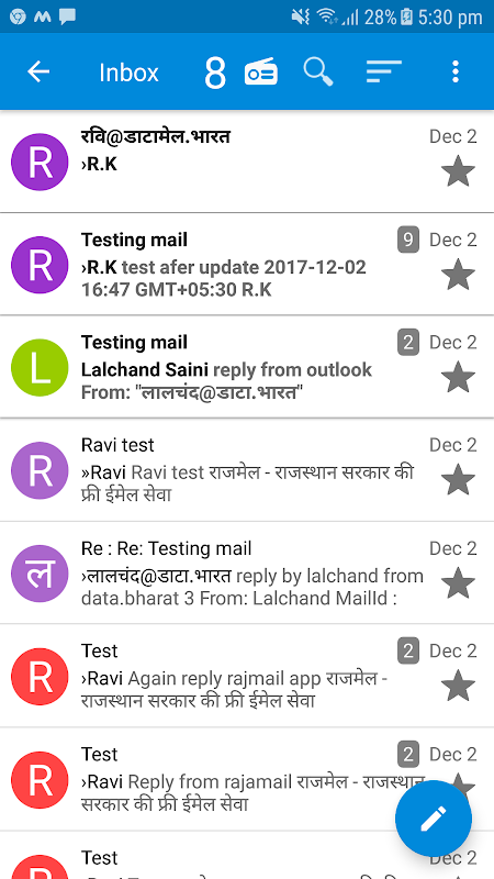 BSNL (Bharat Sanchar Nigam Limitada) Os usuários também podem obter o endereço de e-mail em डाटावन.भारत domínio em 8 idiomas Índia. Webmail também disponível para डाटावन.भारत clientes.