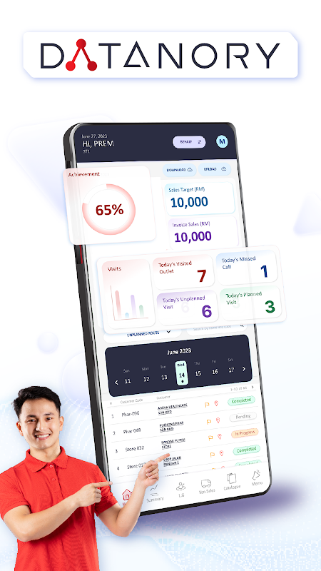 DATANORY O Sistema de Automação da Força de Vendas (SFA) foi projetado como um aplicativo móvel, oferecendo às equipes de vendas flexibilidade e conveniência para realizar tarefas relacionadas a vendas em qualquer lugar. Ele capacita os representantes de vendas com acesso em tempo real às informações do cliente, detalhes do produto e recursos de gerenciamento de pedidos, levando a maior eficiência, melhor atendimento ao cliente e melhor desempenho de vendas.