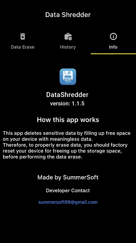 Se você está preocupado com seus dados pessoais armazenados quando joga fora ou vende seu telefone, este aplicativo é para você. Mesmo que você exclua arquivos do seu telefone, seus dados ainda podem estar no espaço livre do seu armazenamento. Este aplicativo funciona preenchendo o espaço livre com dados sem sentido para que seus dados pessoais não sejam deixados para trás. Use este aplicativo antes de se livrar do seu telefone.