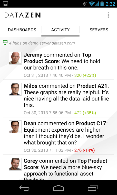 Access enterprise data through your mobile device quickly, effectively and securely. Datazen for Android allows you to connect a Datazen Server and access KPIs and Business Intelligence dashboards based on Excel, SQL Server, SharePoint and other data sources.