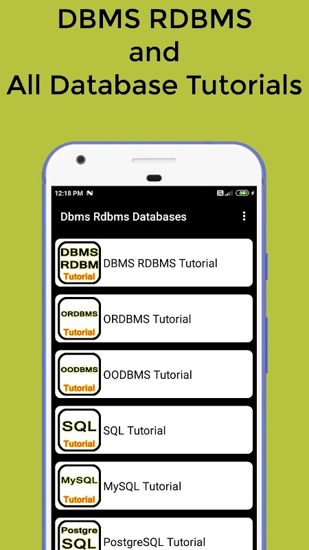 DBMS RDBMS and All Database Tutorials app collections of Categories are below and provide this entire Topic