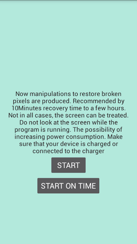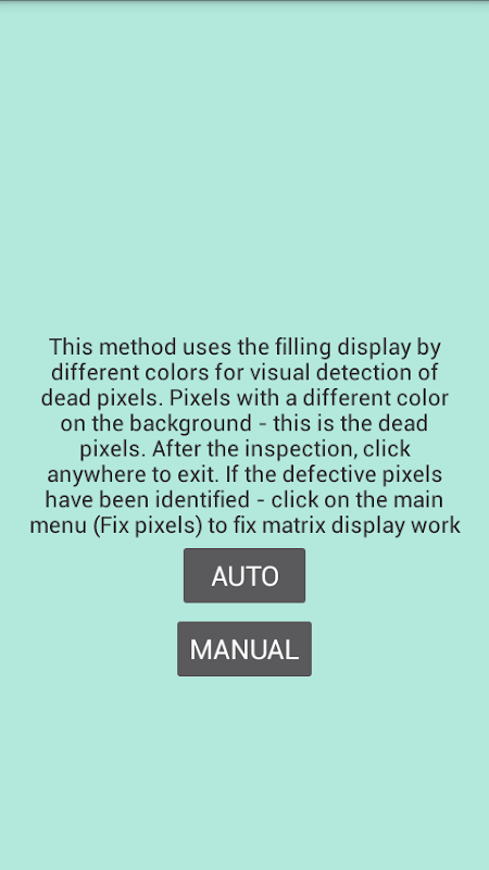 Se você detectar quaisquer pixels presos ou mortos, será possível tentar curá-los. Fornece uma maneira fácil de corrigir o pixel preso. O programa tentará usar diferentes meios para o tratamento de pixels presos. Também funciona para burn-in de tela. Inicie e espere no smartphone ou tablet este aplicativo até que o pixel morto ou o pixel preso tenha sido reparado ou solto.