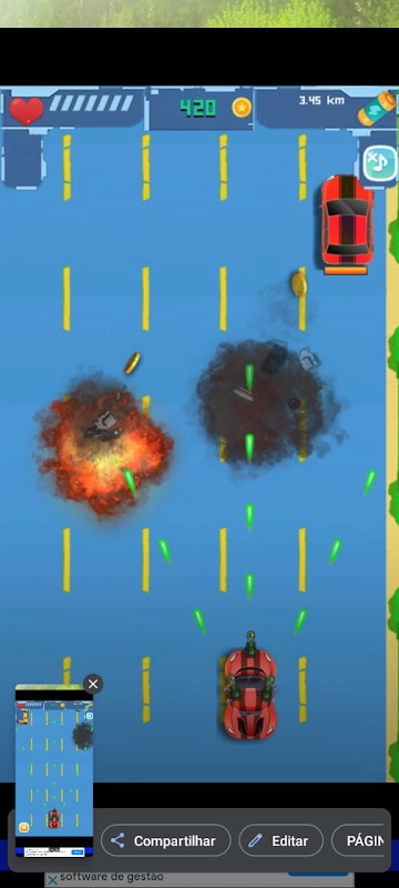 Acelere fundo nesse divertido jogo de corrida e tiro, detone tudo que aparecer na sua frente, acumule moedas, adquira novas armas e se prepare para o confronto final, mas tome muito cuidado, em qualquer momento podem aparecer obstáculos na pista ou mísseis inimigos.
