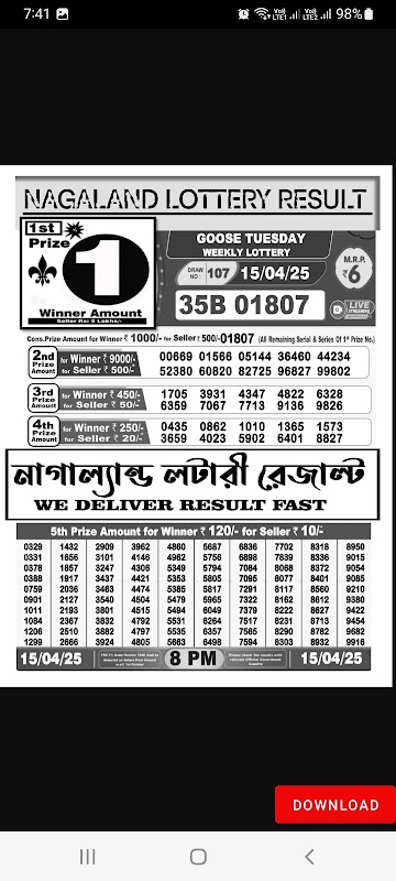 Fonte - Este não é um aplicativo oficial. Não temos qualquer vínculo com o departamento de loteria. Coletamos dados diretamente do site da DhanKesari Lotteries (http://www.nagalandlotteries.com/ e https://www.bhutanstatelotteries.com/today.php)