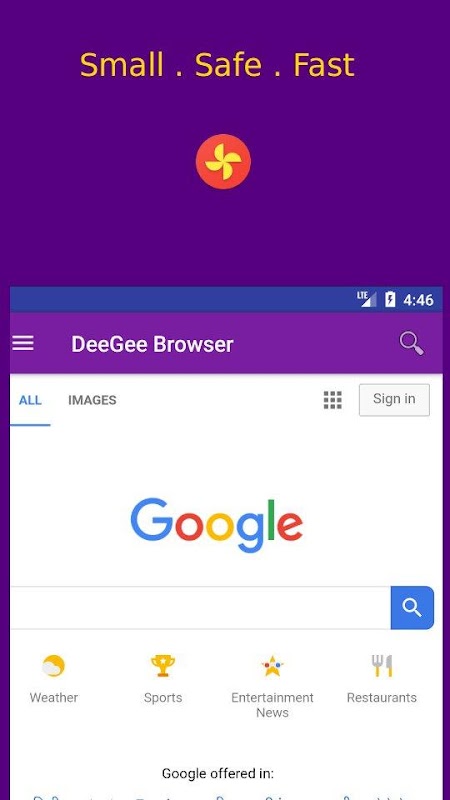 "O DeeGee Lite Browser não solicita permissões extras e não coleta nenhuma informação pessoal! Um navegador compatível com GDPR da UE."