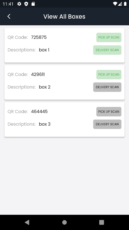 - Capacidade de fazer a varredura de entrega que verificará a caixa e avisa se a caixa não deve ser entregue naquele local.