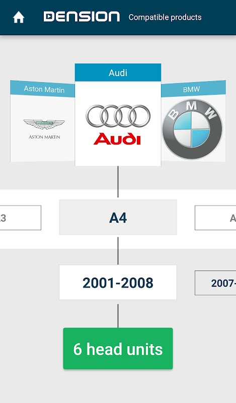 Em caso de dúvida durante a pesquisa para o adaptador de carro Dension multimédia? O Guia de Compatibilidade Dension é uma aplicação selector, onde pode verificar os produtos Dension 'e compatibilidade do seu carro. O aplicativo permite explorar todo o nosso banco de dados onde você está no comando: escolher o seu tipo de carro e chefe da unidade, o ano do modelo, todos os detalhes. Depois de definir suas preferências, o aplicativo lista os produtos compatíveis com o seu número de pacote de varejo e até mesmo descrição detalhada, bem como notas úteis que podem conter informações necessárias para exceções de compatibilidade.