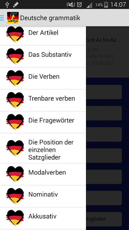 Em nossa gramática você encontrará explicações simples e compreensíveis de vários fenômenos gramaticais na língua alemã. Nossas explicações são baseadas em vários anos de experiência de ensino e devem permitir um acesso fácil à gramática alemã. Ilustrações adicionais apoiam o processo de aprendizagem.