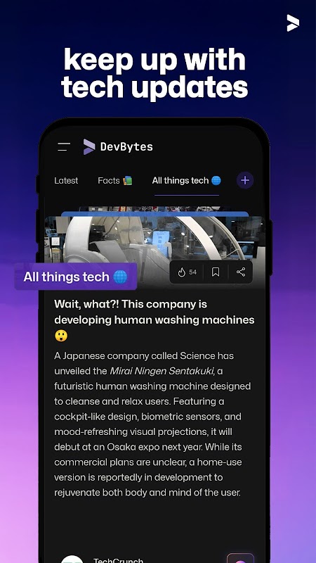 Em vez de fazer malabarismos com 10 aplicativos diferentes apenas para se manter atualizado, o DevBytes reúne tudo o que você precisa em um espaço limpo, rápido e sem distrações. Sem bagunça. Sem anúncios. Apenas o essencial que o torna um desenvolvedor mais perspicaz e inteligente. O DevBytes pode mantê-lo conectado sem sobrecarga, em apenas 5 a 7 minutos por dia.