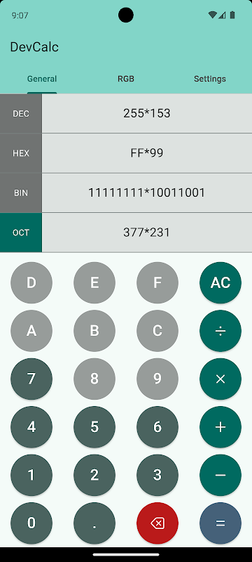 Libere todo o potencial de seus projetos de desenvolvimento com nossa Calculadora de Desenvolvedor, uma ferramenta versátil e poderosa projetada para simplificar cálculos e conversões complexos. Quer você seja um programador experiente ou esteja apenas começando, este aplicativo é a solução ideal para cálculos hexadecimais, decimais, octais e binários, bem como conversões de cores RGB e hexadecimais.