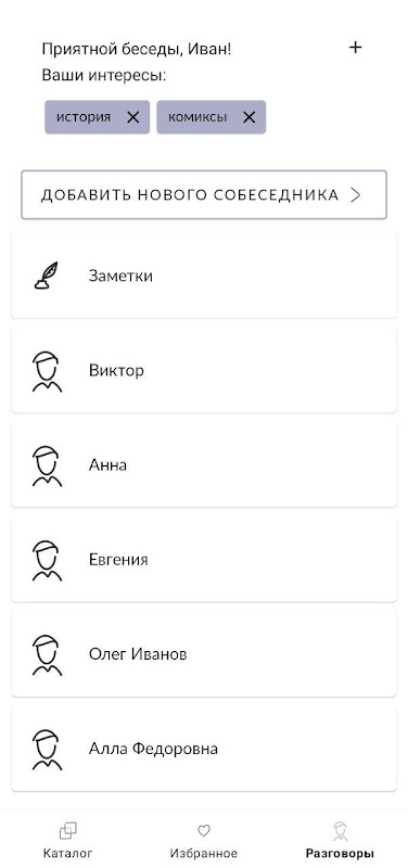 O aplicativo irá ajudá-lo a escolher um tema interessante para conversar com amigos e novos conhecidos. Você pode escolher um tema ou usar um randomizador.