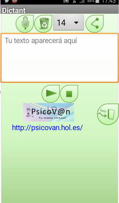 Este aplicativo, chamado DICTANT (em castelhano ditando), serve para emitir qualquer texto através de reconhecimento de voz do Google e ser capaz de compartilhar ou enviar para qualquer dispositivo instalado no aplicativo, como: WhatsApp, e-mail, Facebook, Twitter , etc.
