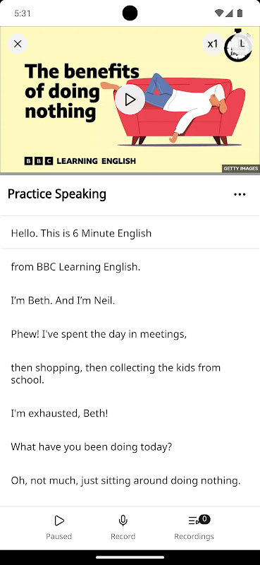 Fala: Pratique o acompanhamento - repetindo o que você ouve para melhorar a pronúncia e a fluência com uma lista de legendas. Você também pode gravar para ouvir de volta e, em seguida, melhorar seu sotaque e sua reflexão sobre a fala.