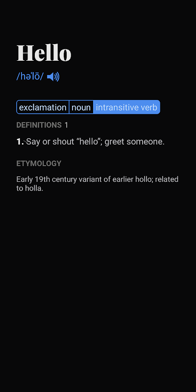 Este é o único dicionário de inglês grátis disponível sem anúncios. O design do aplicativo é mínimo para que você possa se concentrar na leitura. App é otimizado para reduzir o efeito da luz azul. App também suporta tema escuro.