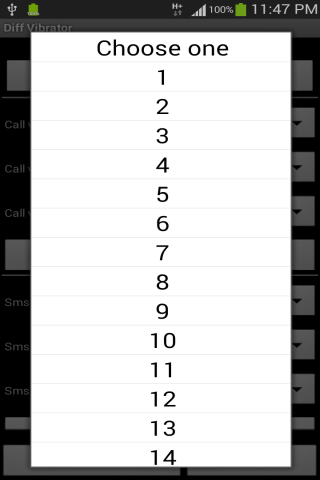 To configure, tap Start to start the Diff Vibrator Service. Select the different vibration settings for phone call and SMS. Call/SMS vibrate pattern allow you to set 'Forever' or a fixed period of time for vibrating before it will stop. In addition, to facilitate quick stop of the vibration, a widget is added. Add it to your Home screen and then when smart-phone keep vibrating because you set the pattern to 'Forever', tap the widget to stop vibration immediately.