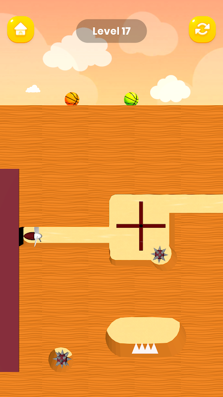 Leve a bola de basquete até a cesta, esculpindo caminhos na areia em Dig and Dunk