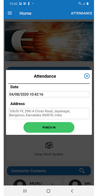 • Worker Module – Every staff working for a contractor will have a mobile app using which they can punch in their attendance, look at their work schedule, upload daily progress report, chat with other colleagues, video conference with company and attend meetings based on schedule