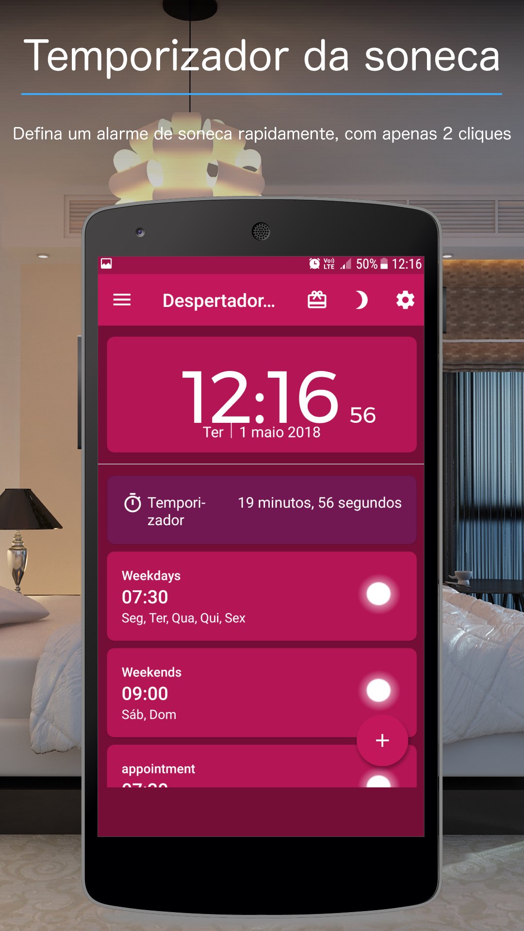 ⚡ Opções de despertador alto – você pode personalizar individualmente cada alarme com musica!