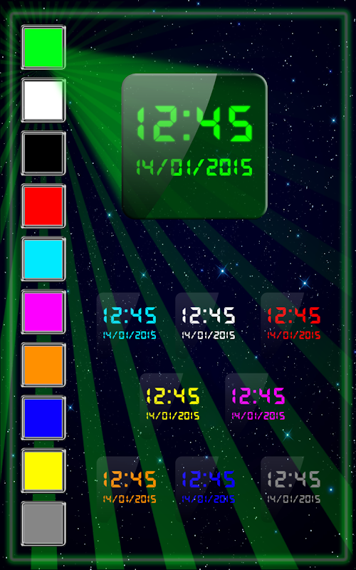 Aqui está uma oportunidade que você não pode perder! Seja criativo e combinar seu papel de parede ao vivo com aa "Digitais Widget Relógio" com data e hora para dar o seu telefone olhar colorido e animado! Sem grandes ou pequenos relógios digitais pode até mesmo chegar perto desse widget de relógio incrível - a variedade de rostos de widget será igualmente apaziguar a cada estilo, tanto para meninos e meninas.