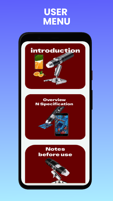Este aplicativo é meramente informativo, com o objetivo de oferecer informações valiosas sobre o Microscópio Digital USB.