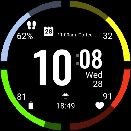 Você está cansado de mostradores chatos que apenas mostram as horas? Você quer apimentar seu pulso com um toque digital? Então você precisa do mostrador modular digital, o mostrador personalizável definitivo para o seu smartwatch. Com este mostrador do relógio, você pode ver sua frequência cardíaca, nível da bateria, passos (porcentagem da meta definida, não contagem real de passos) e dois outros recursos de sua escolha.