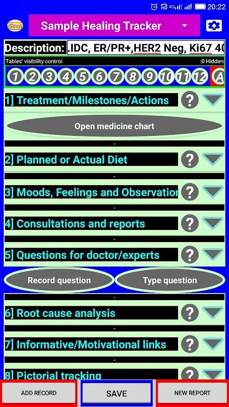 Logging, comparing and tracking pathology reports and other measured parameters- plot bar-charts to visually compare parameters along with treatment milestones.