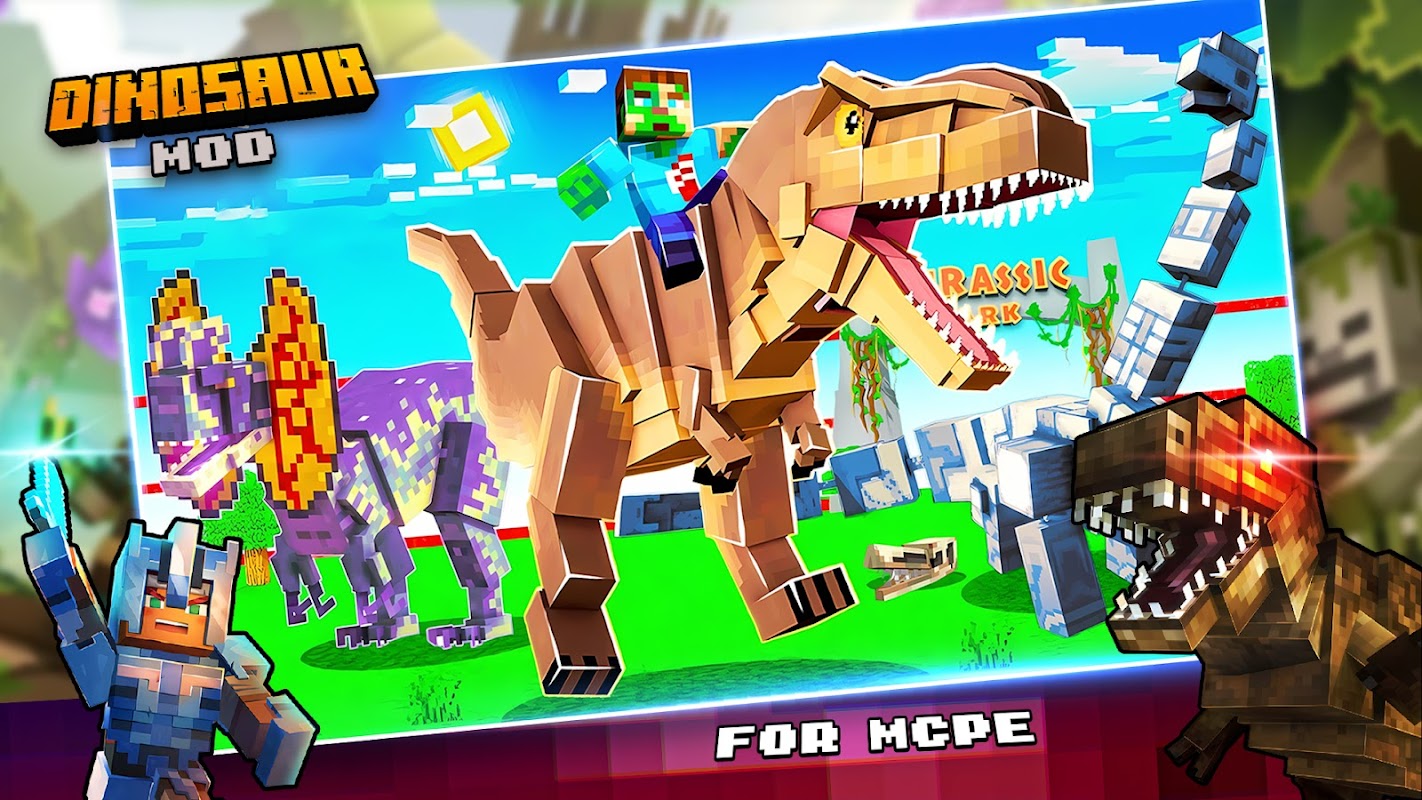 Baixe o mais novo Dinosaur Jurassic Mod Craft para Minecraft PE (MCPE), incluindo complementos. Com esses mods, você pode adicionar muitos novos tipos de minecraft de dinossauros pré-históricos e criar armas jurássicas, pilhar ruínas e afastar predadores selvagens. Entre na batalha com seu próprio mod de dinossauro enquanto atualiza sua armadura e constrói seu próprio exército. Se você quiser ver como os dinossauros realmente eram, este é o seu complemento. Para todas as pessoas que querem ter uma nova experiência no jogo, pois adiciona dinossauros minecraft grandes e poderosos, passivos e agressivos, herbívoros, onívoros, carnívoros, tipo híbrido, voadores semi-aquáticos e cuáticos, pequenos, médios e gigantes com alta qualidade animações, sons, variações de textura hd e muito mais!