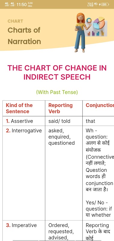 Fala / narração direta e indireta em hindi é fornecida neste aplicativo.