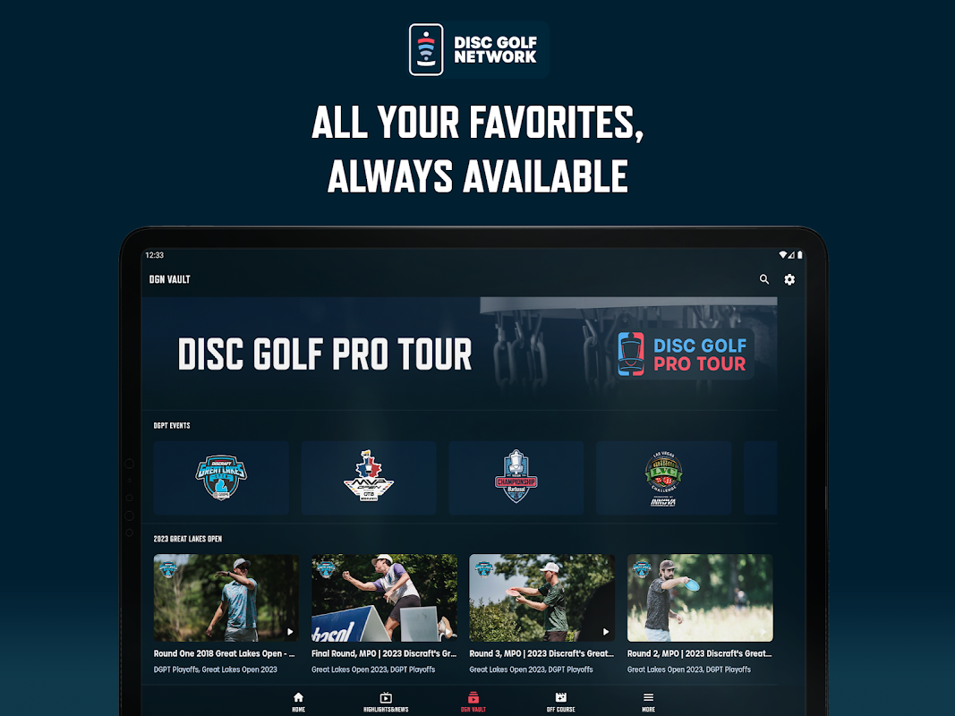 A Disc Golf Network oferece cobertura em vídeo dos principais eventos de golfe em disco. A assinatura inclui cobertura ao vivo dos eventos do Disc Golf Pro Tour, cobertura pós-produzida e shows e segmentos exclusivos disponíveis apenas na rede.