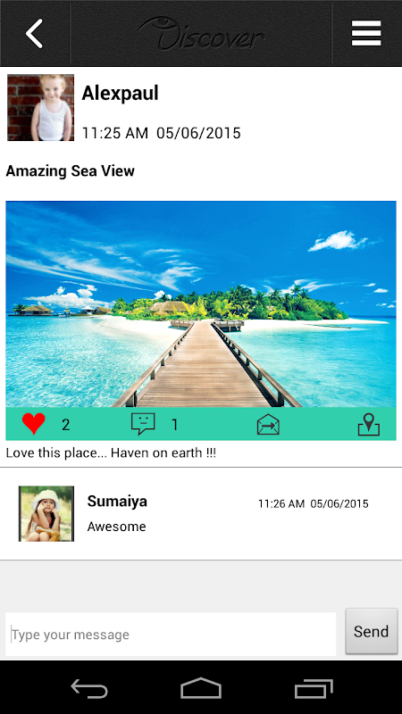 “Discover App” is a concept for global service in which people can make friends and provide communication service which enables smooth photo sharing and communication with global friends. Share your photo’s to enjoy and get new Inspirations from others by looking through photos. Also share your profile to new friends and see others profile. Share your interesting photos and stories with global friends.