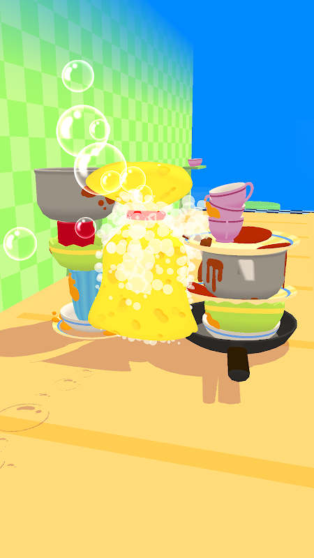Deslize sua esponja e amasse-a para limpar os pratos!