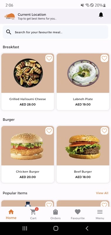 Aplicativo Dishdash para amantes da comida. Através do nosso aplicativo você pode fazer pedidos de comida e pedir as duas opções: take away em nosso restaurante ou entrega em domicílio. Você também pode acompanhar o status do pedido