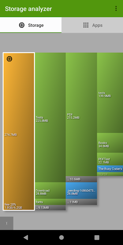O Storage Analyzer é uma ferramenta que pode encontrar os maiores arquivos e pastas no armazenamento interno do seu dispositivo e identificar quais aplicativos consomem mais armazenamento.