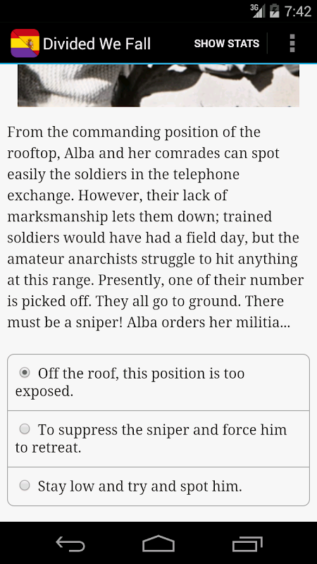 Neste romance interativo, você acompanhará e moldará a vida de quatro jovens espanhóis de ambos os lados da linha divisória. Há um policial de esquerda, uma boa moça católica que se torna enfermeira, um piloto de caça patriota e uma milícia anarquista que pega em armas em nome da revolução.