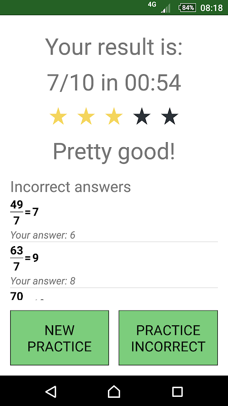 Quando terminar, você pode optar por praticar apenas aqueles que respondeu errado ou começar tudo de novo.