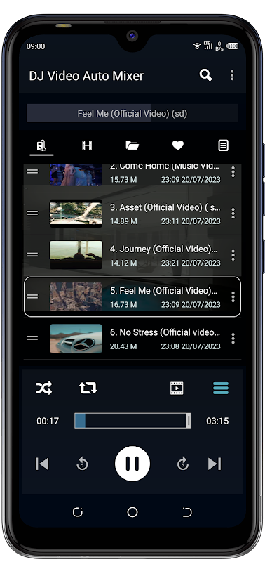 - O DJ Video Automix também permite selecionar uma lista de vídeos a serem reproduzidos enquanto exclui outros usando o filtro.
