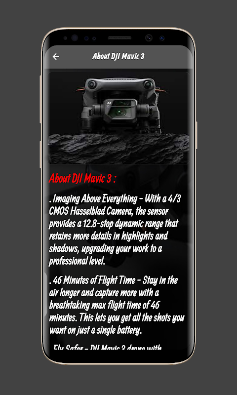 Além disso, através do aplicativo DJI Mavic 3 Guide, você pode visualizar muitas fotos de diferentes ângulos do DJI Mavic 3, através do qual você pode aprender todos os seus detalhes. Além disso, através do aplicativo DJI Mavic 3 Guide, você pode ver muitos recursos que foram adicionados ao DJI Mavic 3, o que o diferencia de outros drones