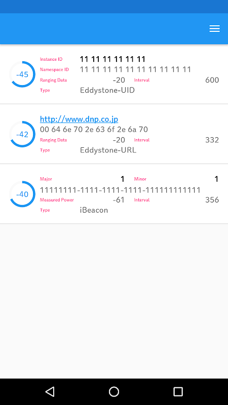 BLEビーコンの設置・設定、管理等を支援するアプリケーションです。 ビーコン電波の発信情報の表示と、ゲージによる電波強度の可視化が可能です。