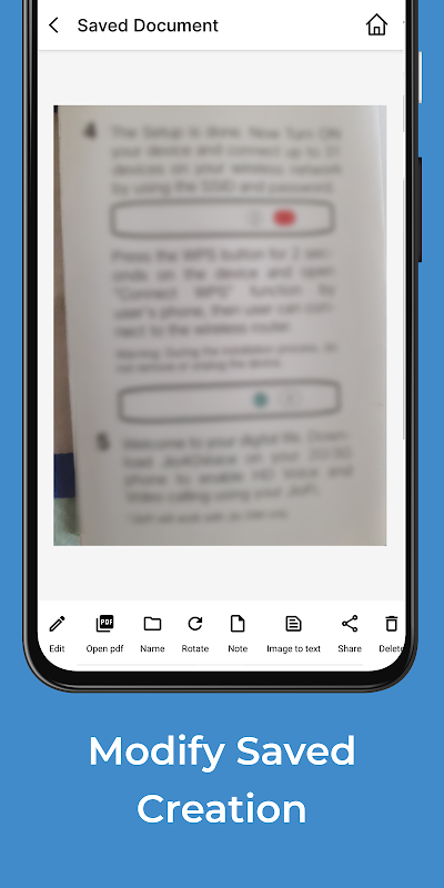 - Share scanned documents any other Apps with your friends and family.