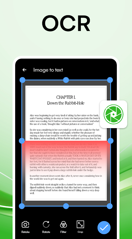 📌 Digitaliza a imagem para o formato de texto no recurso de scanner ocr deste aplicativo