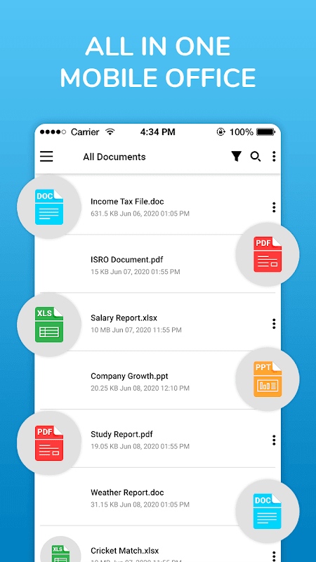 Our free document reader supports everyone and special office users with office viewer such as: Pdf Reader, Docs Reader, Docx Reader, PPT Viewer, Txt Reader is supported formats for document viewer to be used.