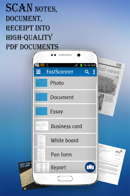 Are you looking for a mobile scanner? Document Scanner turns your Android devices into a multiple pages scanner for documents, receipts, notes, invoices, business cards, whiteboards and other paper text.