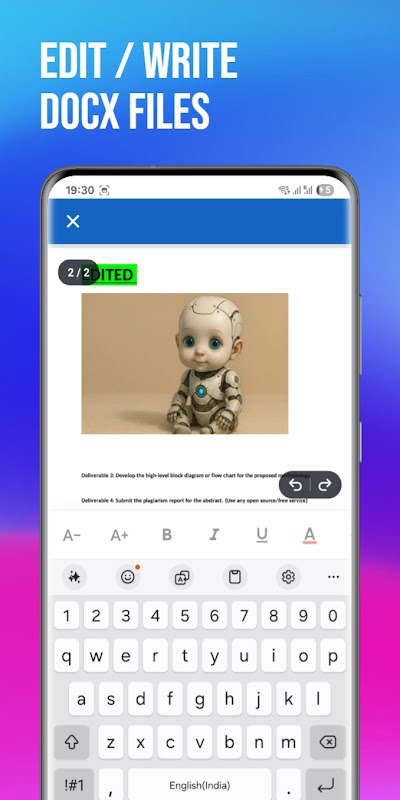 Faça alterações rápidas em seus arquivos Docx a qualquer momento. Edite o texto, atualize a formatação, ajuste estilos e crie documentos limpos e com aparência profissional diretamente do seu celular.