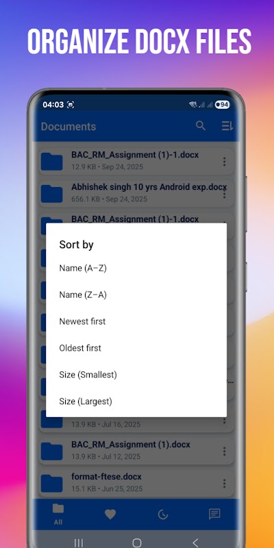 Todos os seus documentos do Word (docx/doc) são detectados e organizados automaticamente em um só lugar. Pesquise, filtre e acesse arquivos docx rapidamente.
