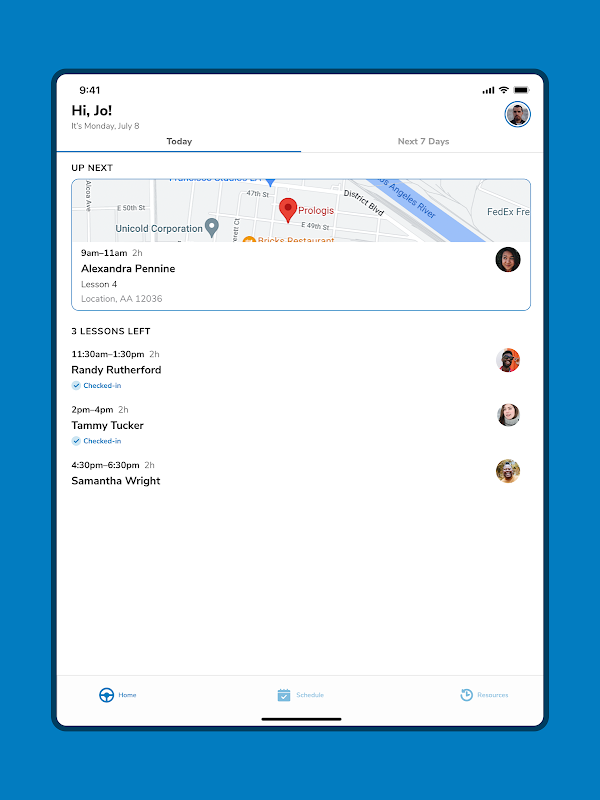 Os instrutores de direção podem visualizar sua agenda, gerenciar seus alunos e atualizar o progresso de direção dos alunos revisando as habilidades e notas compartilhadas, bem como receber notificações de atividades importantes.