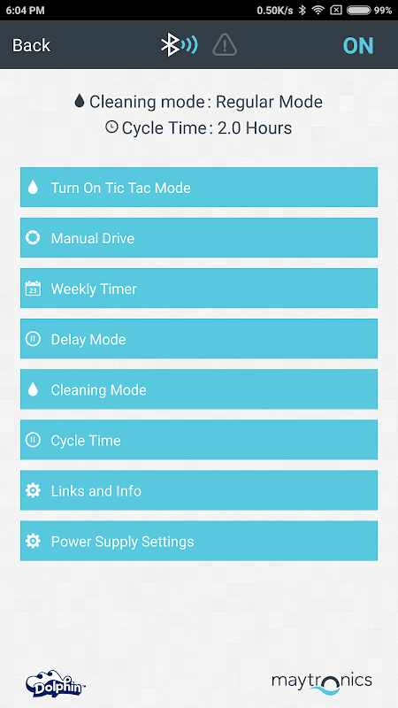 DolphinTech ™ é um aplicativo suplementar para profissionais. Com uma interface intuitiva, permite que revendedores e técnicos realizem reparos rápidos remotamente - economizando horas e até mesmo dias de espera para que o Dolphin volte a limpar suas piscinas.