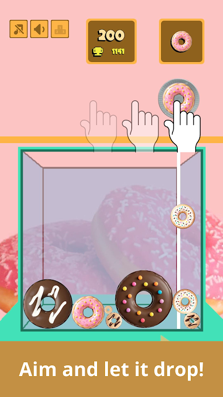 Solte os donuts estrategicamente para que colidam com outros idênticos e, assim, crie donuts maiores e mais deliciosos; quanto maior, mais pontos.