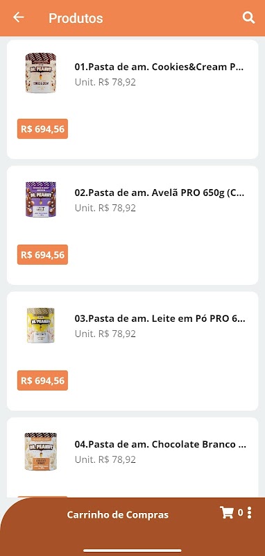 App para realizar pedidos de vendas de produtos Dr. Peanut