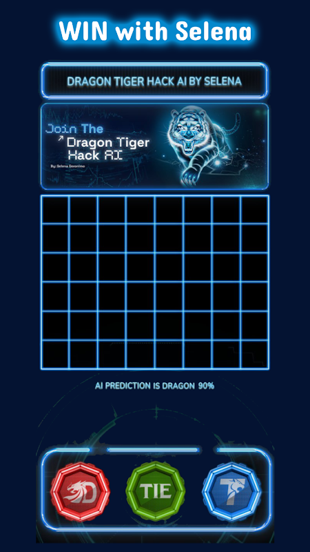 Entre no mundo dos jogos inteligentes com Selena como guia. Nosso aplicativo fornece previsões não apenas para Dragon Tiger, mas também para uma variedade de jogos de cassino. Do Blackjack à Roleta, deixe que os insights de Selena o levem à vitória. Faça apostas estratégicas e desfrute de uma experiência de cassino mais gratificante!