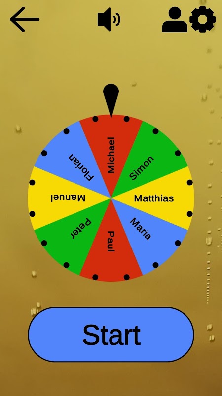 Einfach einen der 4 Spielmodi auswählen und schon öffnet sich das Trink-Roulette, das mit den Namen der Spieler beschriftet ist.